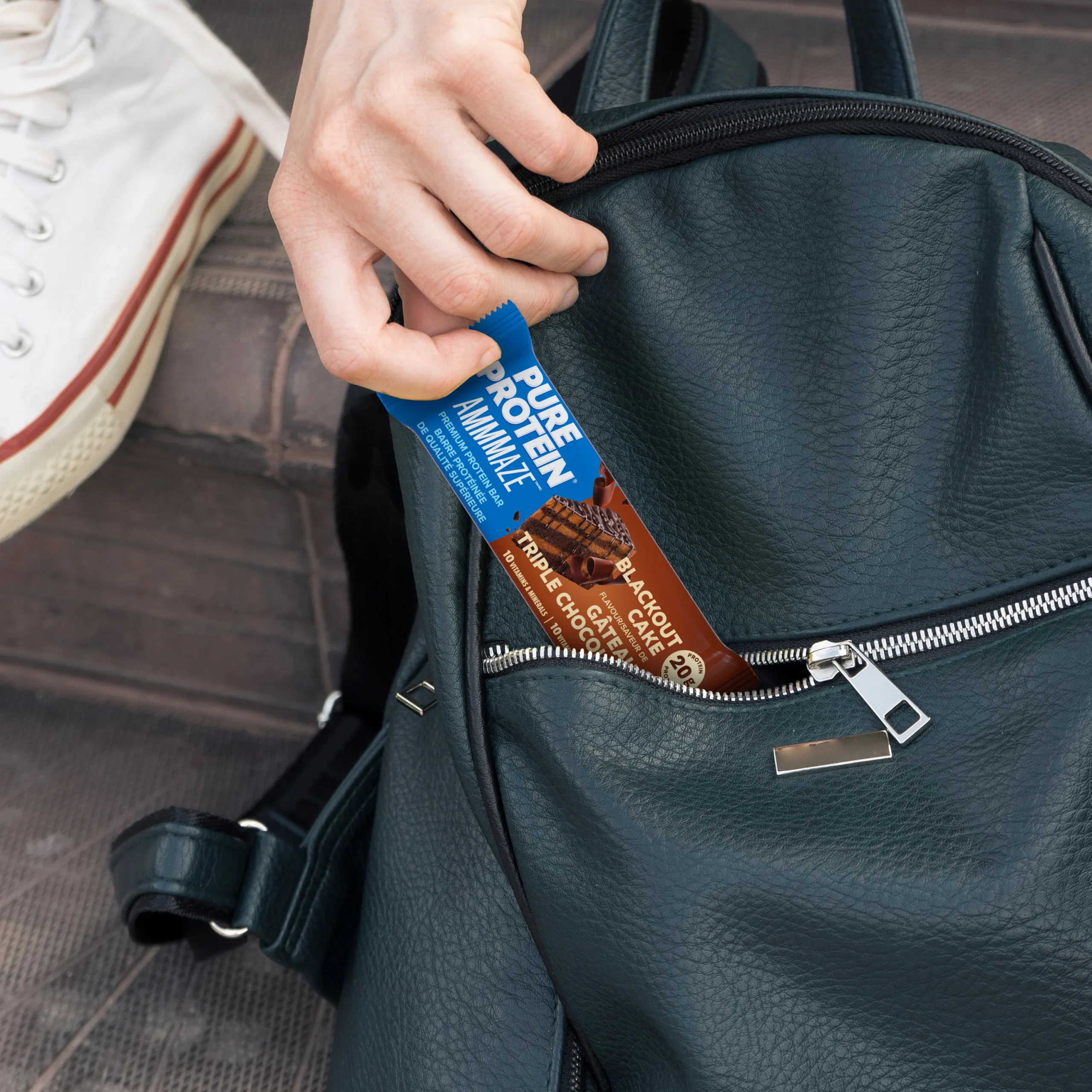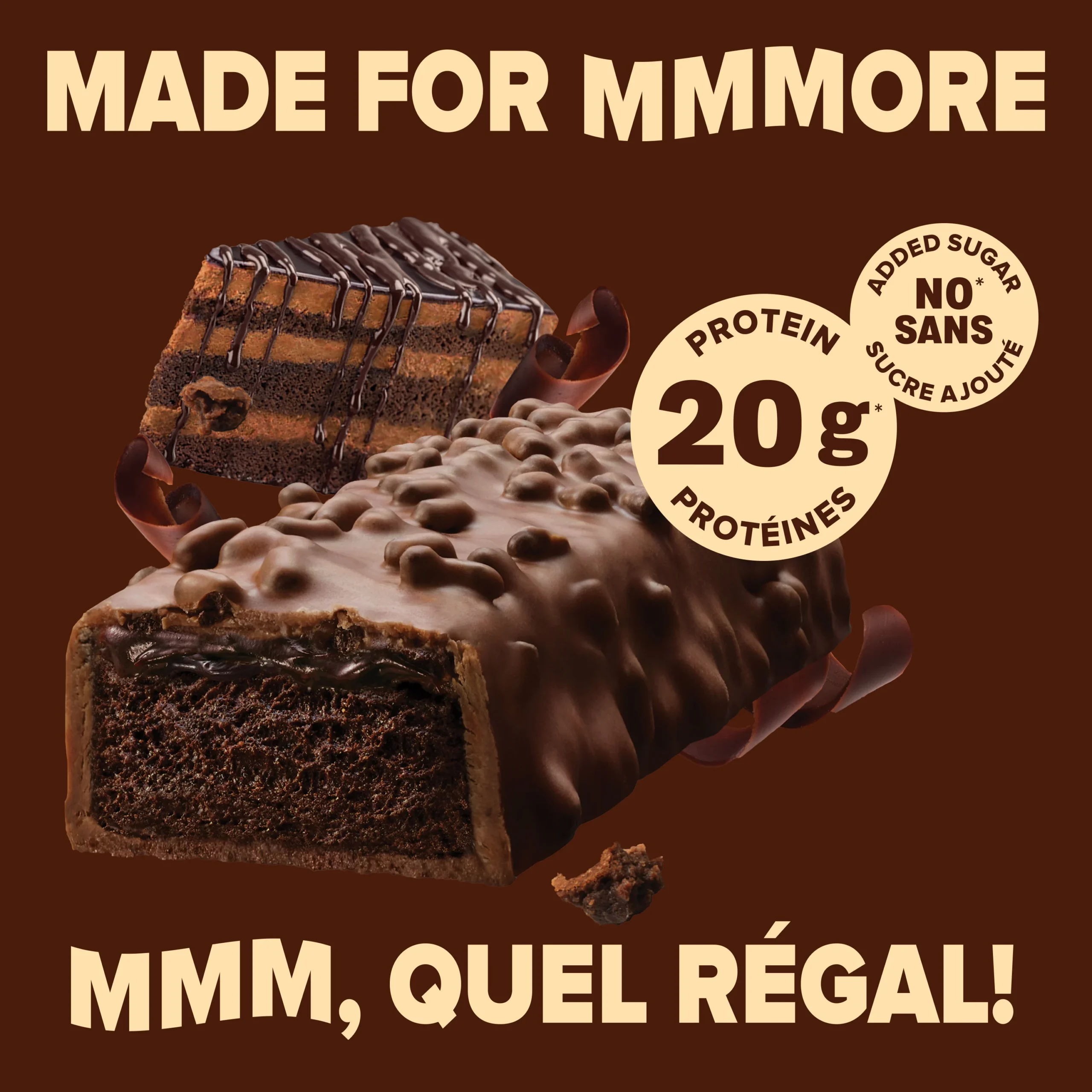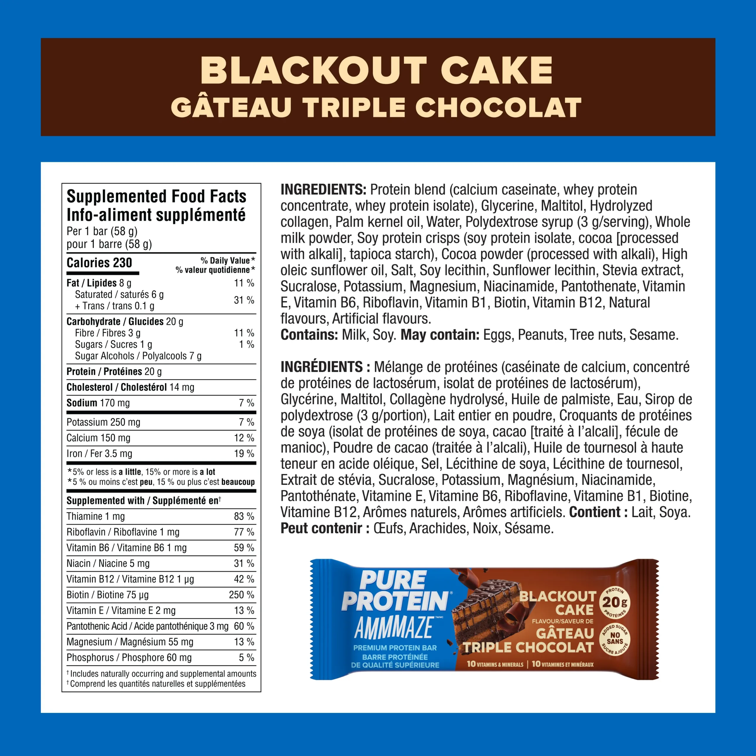 Pure Protein AMMMAZE Blackout Cake bars feature a rich, fudgy centre, dipped in a decadent milk chocolate coating and topped with crave-worthy chocolate crunchies.