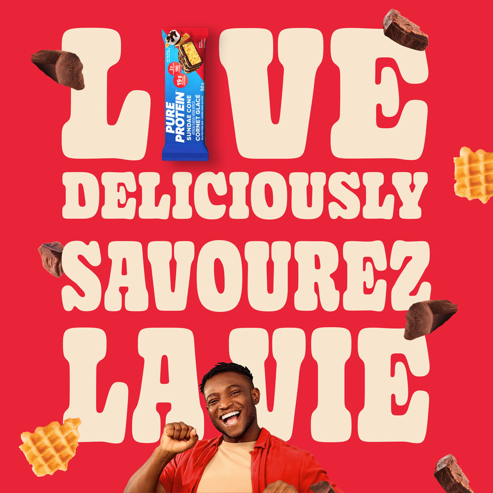 NEW! Looking for an easy way to add more protein to your diet? This Pure Protein Sundae Cone bar is a gluten free, protein powerhouse packed with 19 grams of protein. It is the perfect combination of protein and great taste. A recent reviewer says, “There are chocolate chunks and little crispy bites in this bar that adds a good texture. It tastes good with no lingering after taste, not too sweet but at the same time has a substantial amount of protein which helps keep me full.”